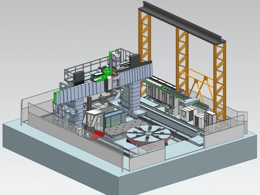 The machine will be equipped with a rotary table with carousel function, the diameter of the table clamping plate is 4,500 mm with a maximum turning diameter of 6,500 mm and with a clamping plate. These technical parameters make it possible to manufacture valves of large dimensions.
